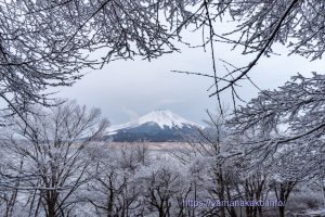 雪景色の中に富士山