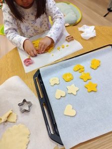 2月14日のバレンタインデーに、子供たちと一緒に型抜きクッキー作りを楽しみました。 ・・・